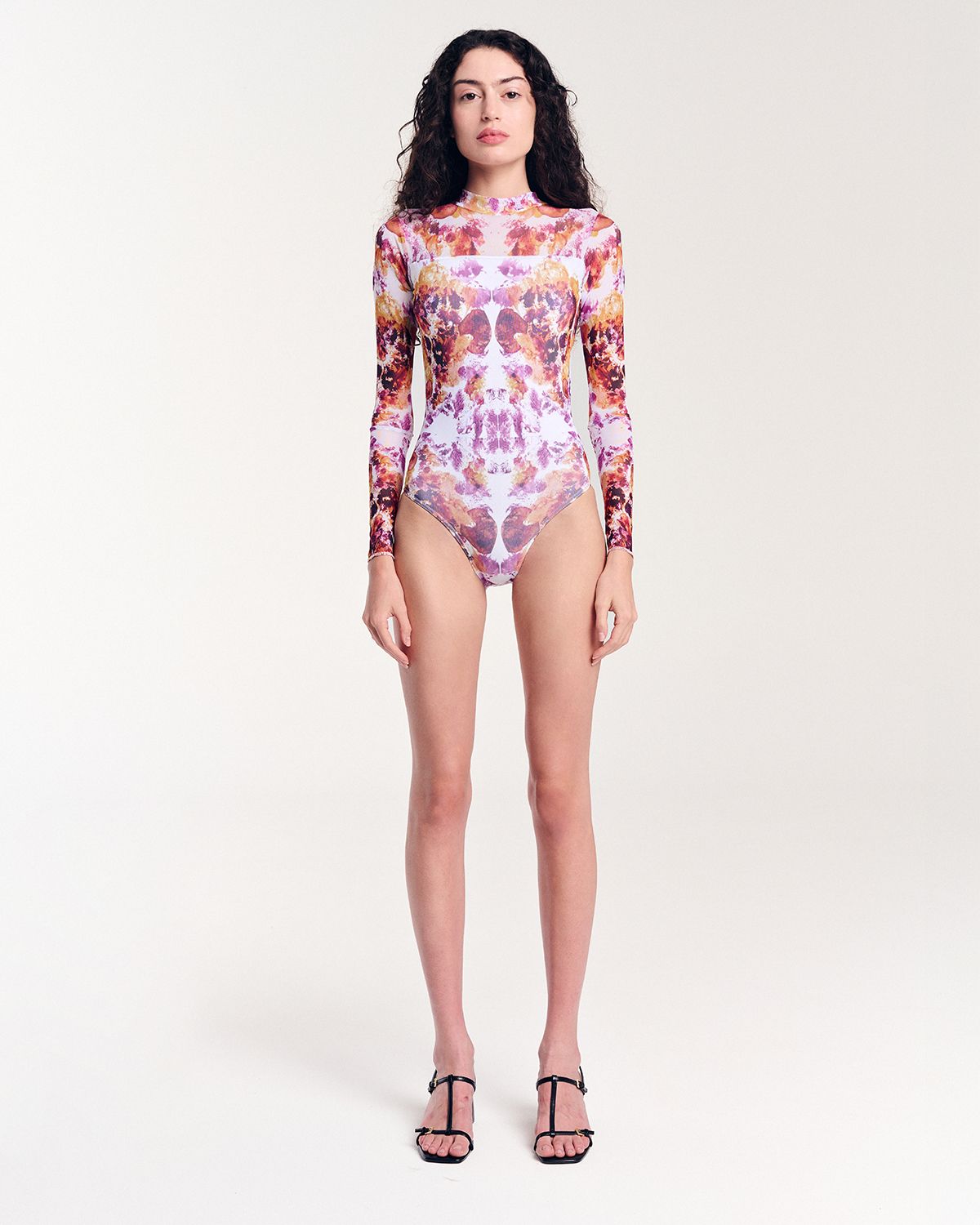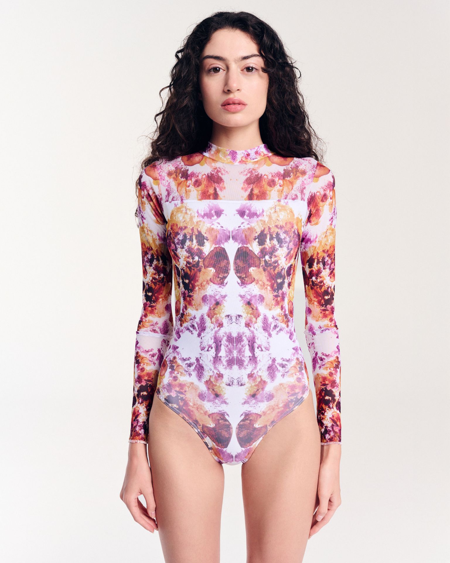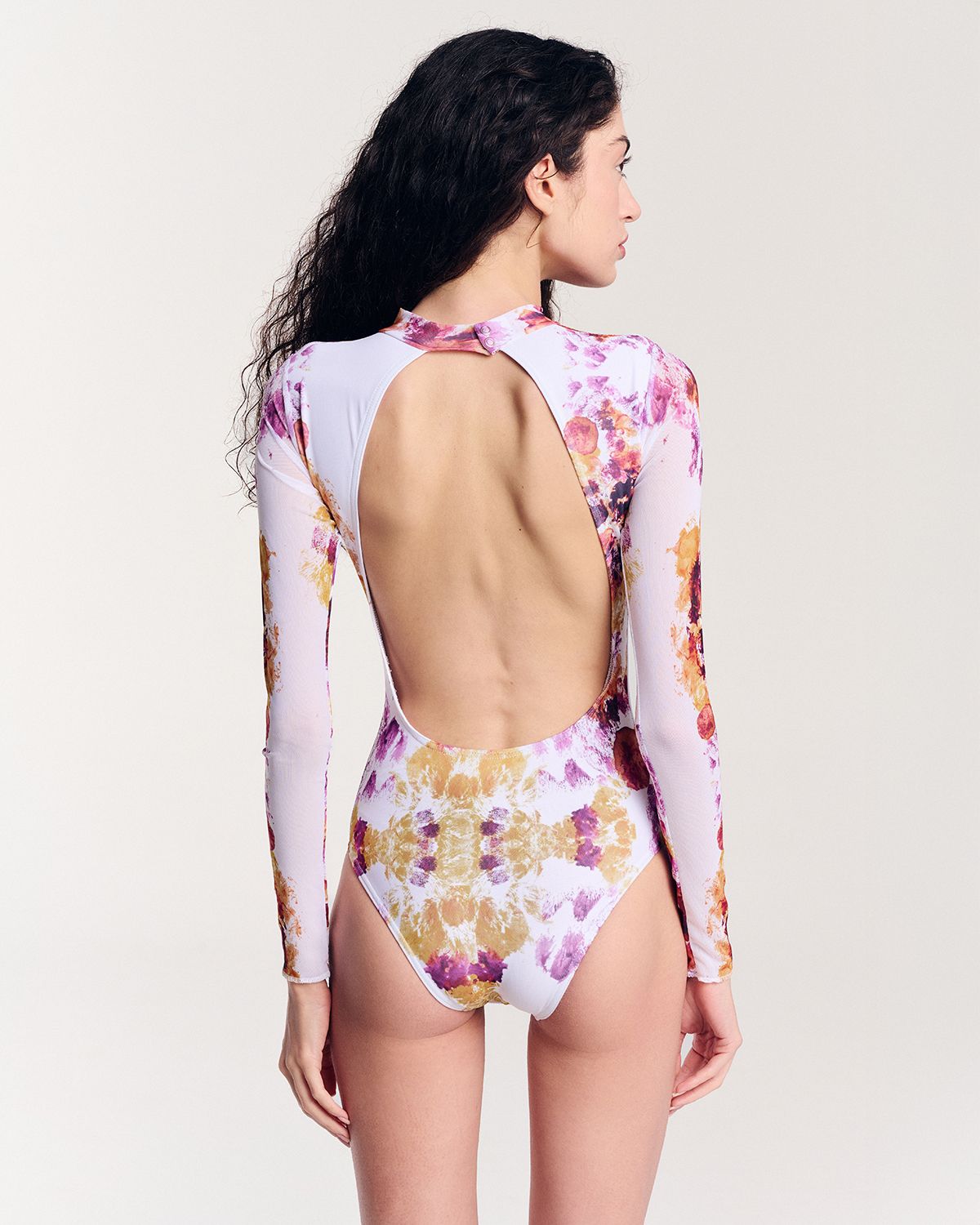 If you’re looking for something truly special and artsy, this is it! This long sleeve bodysuit with an eye-catching open back isn’t just clothing – it’s wearable art. The print comes straight from an original painting on canvas, making each piece feel one-of-a-kind and full of character.