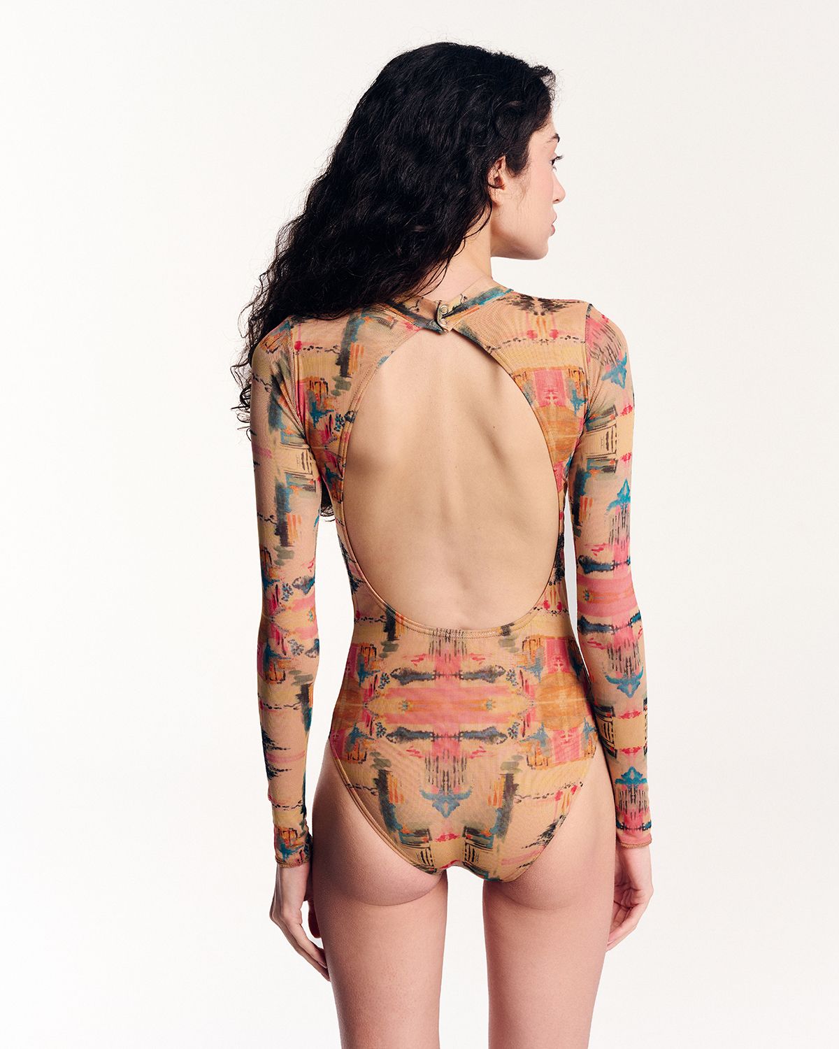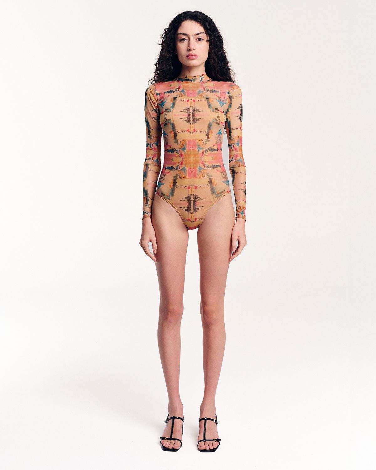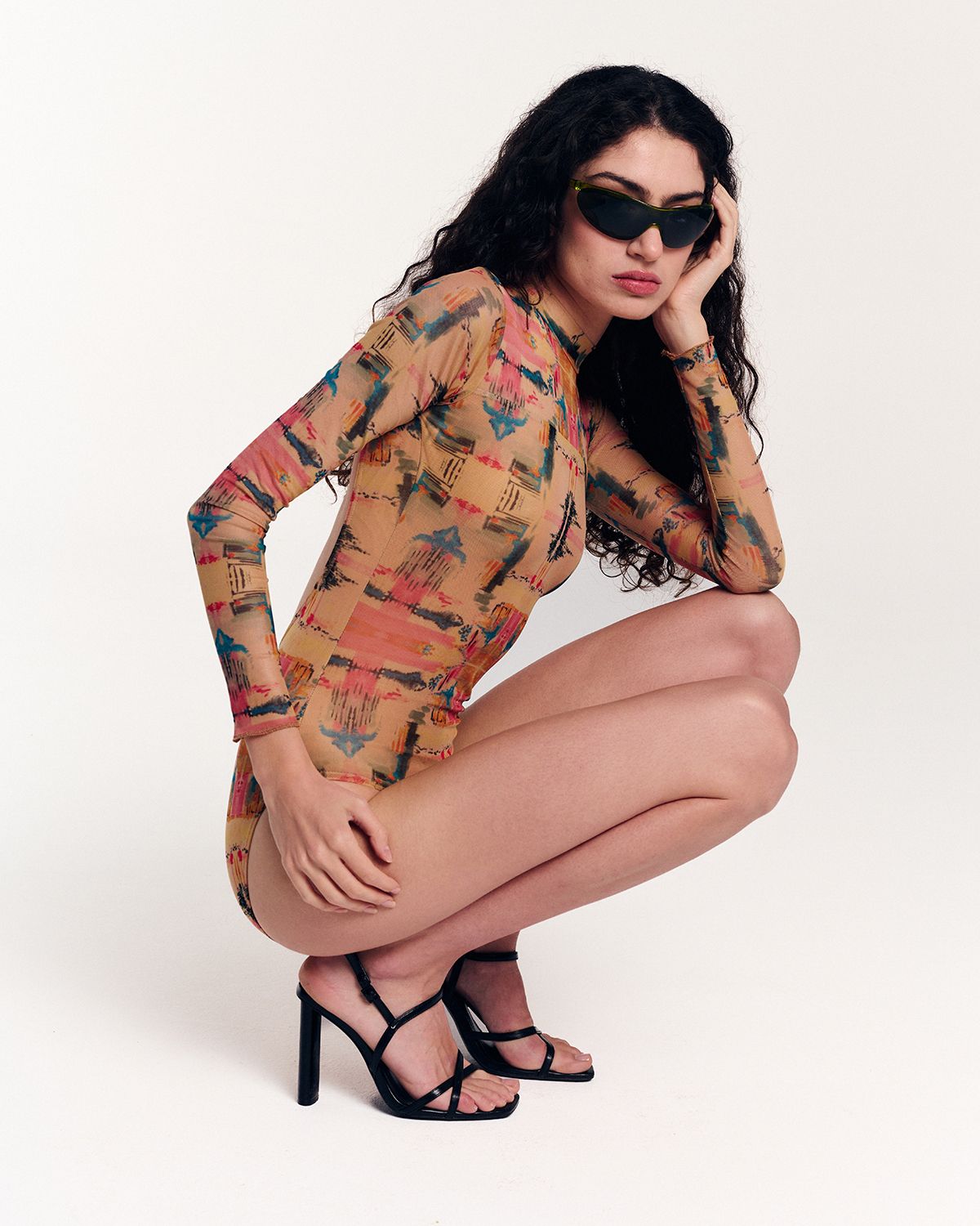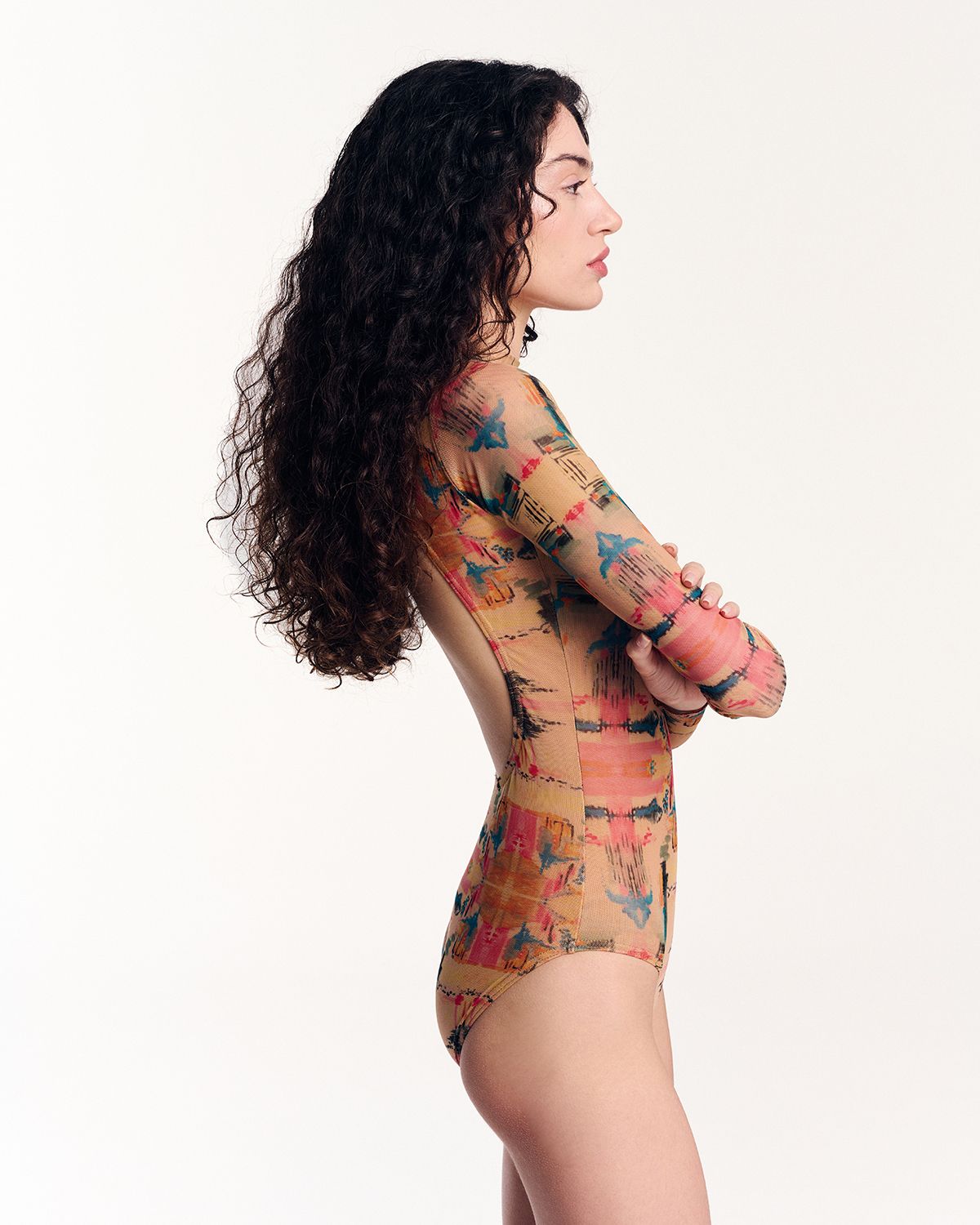If you’re looking for something truly special and artsy, this is it! This long sleeve bodysuit with an eye-catching open back isn’t just clothing – it’s wearable art. The print comes straight from an original painting on canvas, making each piece feel one-of-a-kind and full of character.